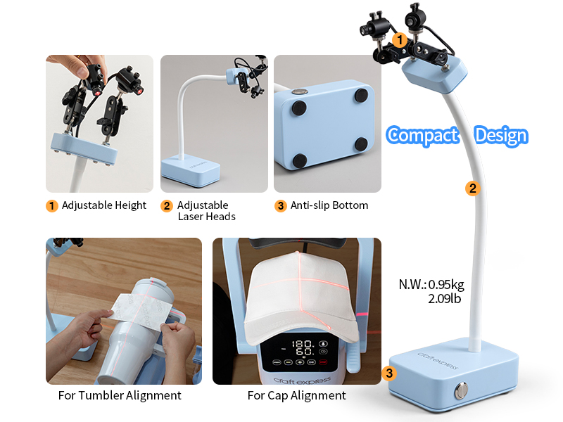 Come with 2 pcs straight-line infrared laser heads,1 piece of 5V power adapter Suitable for positioning of flat heat press machine and tumbler sticker applications.