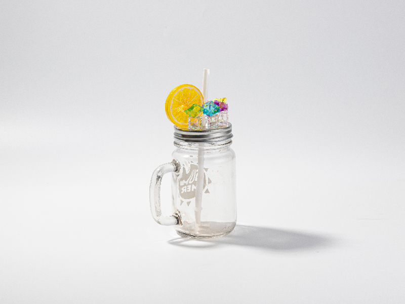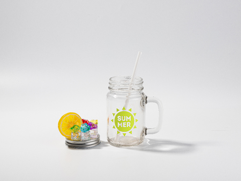 Item Name: 12oz/350ml Sublimation Blanks Clear Glass Mason Jar with Fake Ice & Fruit Topper Lid (Clear, Lemon)