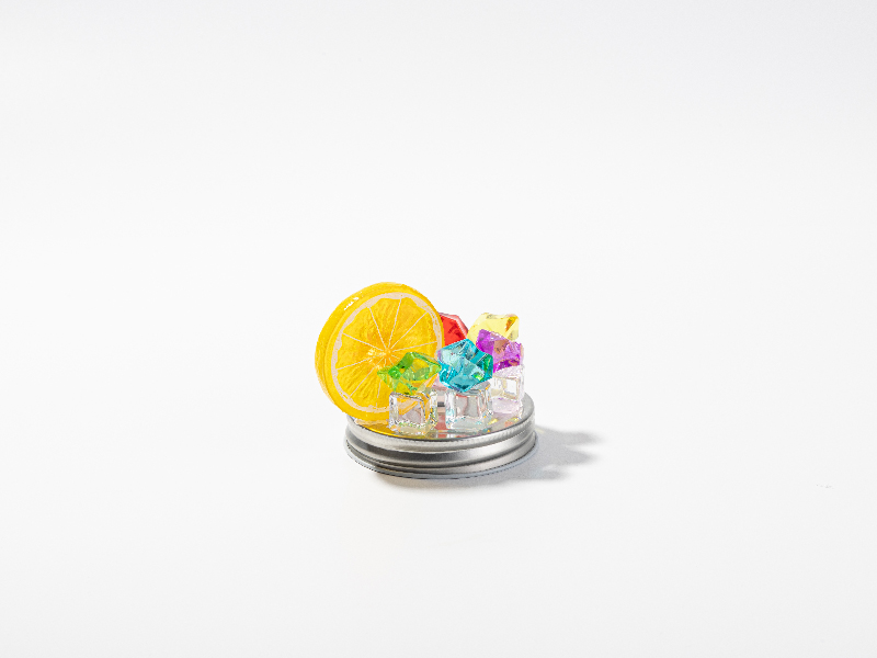 Material: Clear Glass, 7pcs Clear Square Fake Ice, 7pcs Crushed Fake Ice and 1 piece PVC Yellow Lemon Slice.