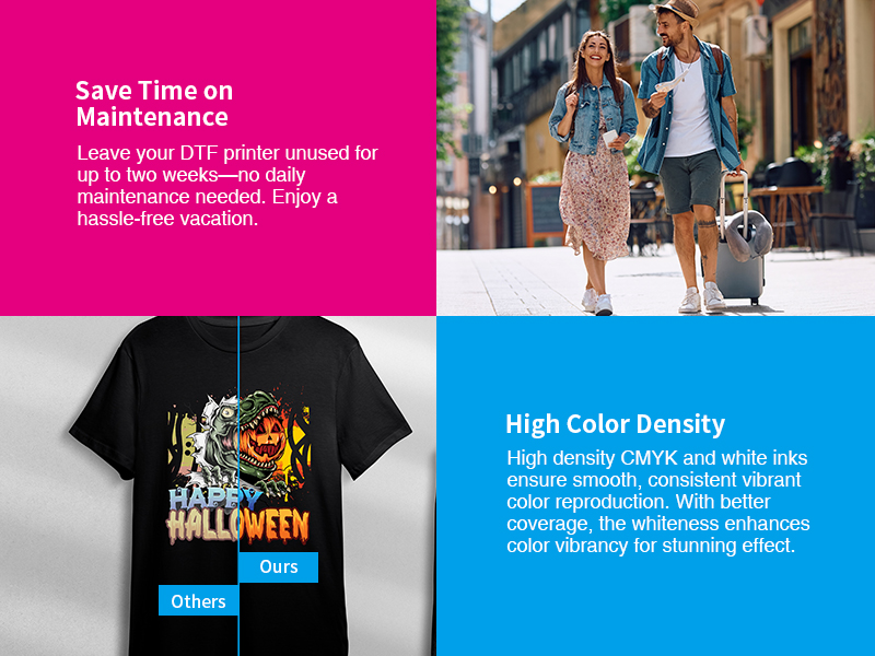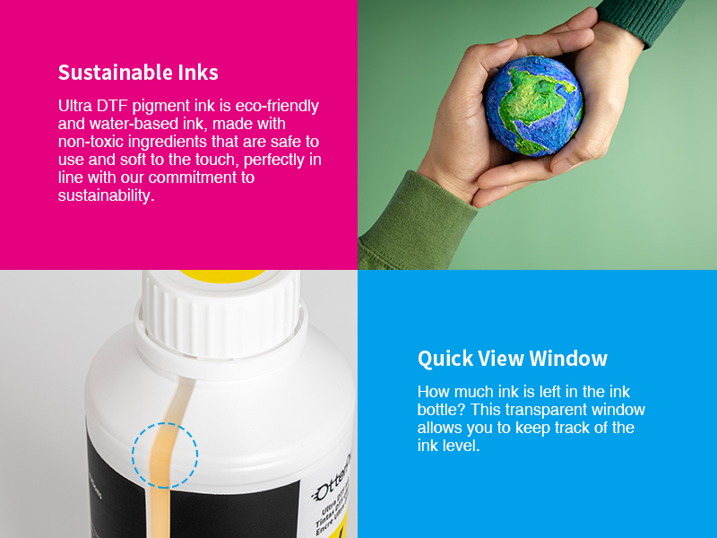 This OtterPro Ultra DTF White Ink is specially designed for DTF printers. The upgraded formula provides strong white coverage with no precipitation, even without daily printing. It must be used with OtterPro Ultra color inks to prevent nozzle clogging.