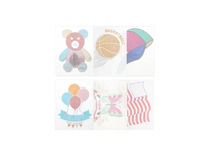 | Item Name: Faux Rhinestone Transfer Sheet Mixed Package 6pcs Item No.: RST6H-01 Sheet Size: 20*26cm Bear size:172*230mm Basket Ball size:178*230mm Cap Size:180*227mm Balloon Size:176*230mm Butterfly Size:180*224mm National Flag Size:168*230mm Includes Bear, Basket Ball, Cap, Balloon, Butterfly, National Flag, each 1pc, total 6 sheets/pack |