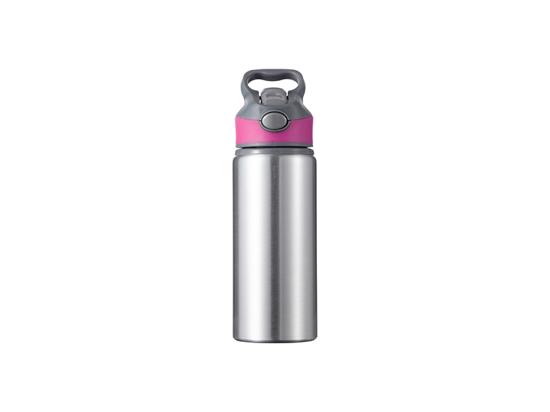 Garrafa Alumínio 20OZ/650ml Tampa Fúcsia (Prateado)