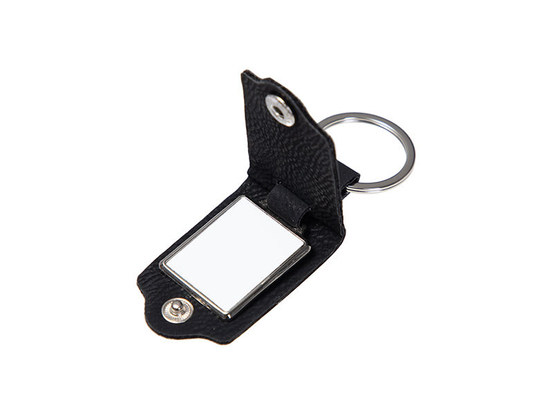 Porta-Chaves de Couro para Gravagem (3.5*7.5cm, Preto)