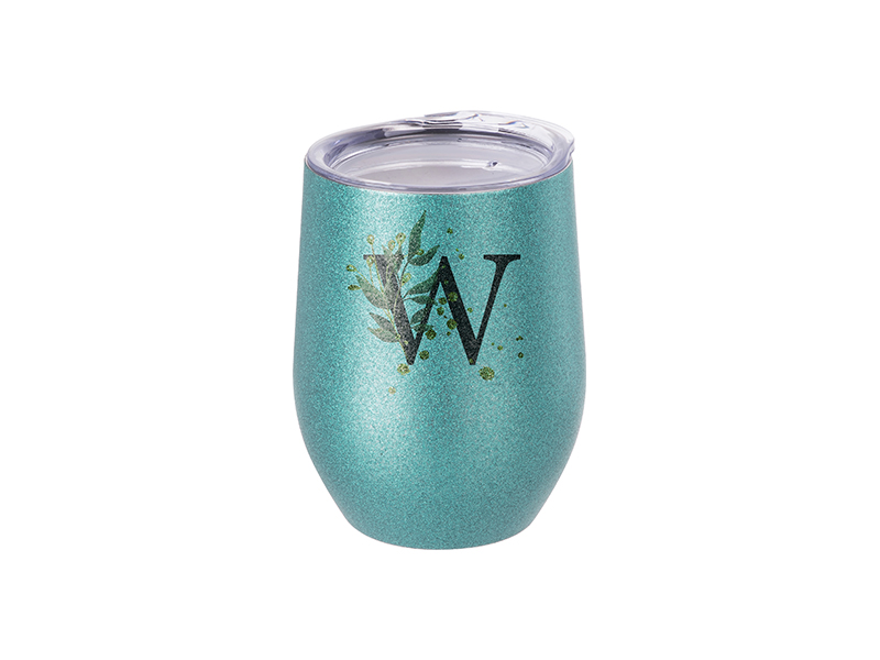 Item Name: Sublimation 12oz/360ml Stainless Steel Stemless Glitter Cup w/ Lid (Blue)