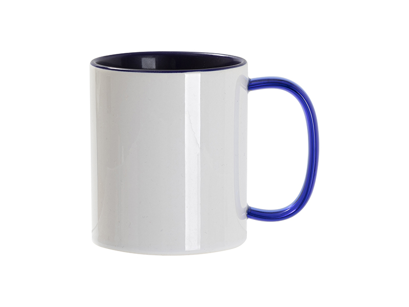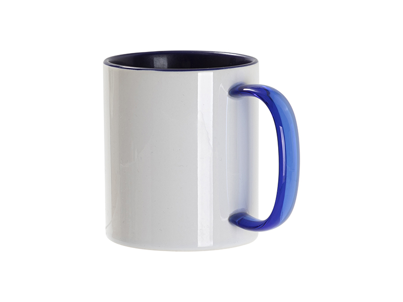 Itme Name: Sublimation Blanks 11oz Two-Tone Color Mug - Dark Blue (Blue Glass Handle)