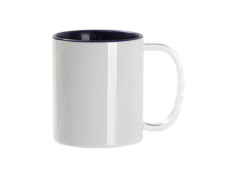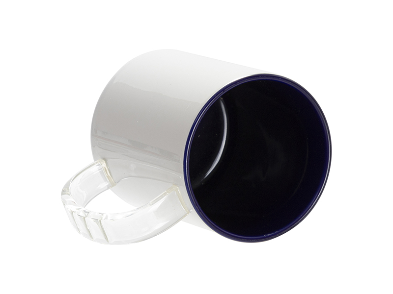 Itme Name: Sublimation Blanks 11oz Two-Tone Color Mug - Dark Blue (Clear Glass Handle)