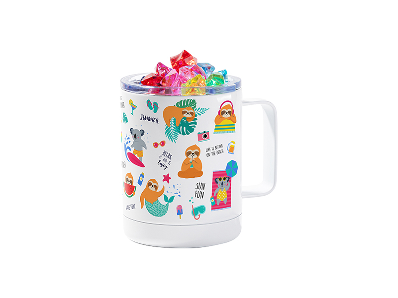 Item Name: 12oz/360ml SS Sublimation Blanks White Coffee Cup with Color Fake Crushed Ice Topper Lid