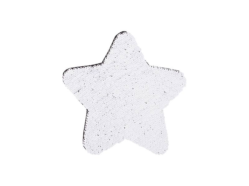 Item Name: Sublimation Flip Sequins Adhesive Black Base (Star, Silver W/ White)