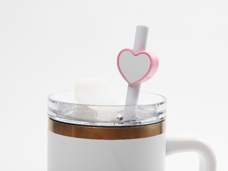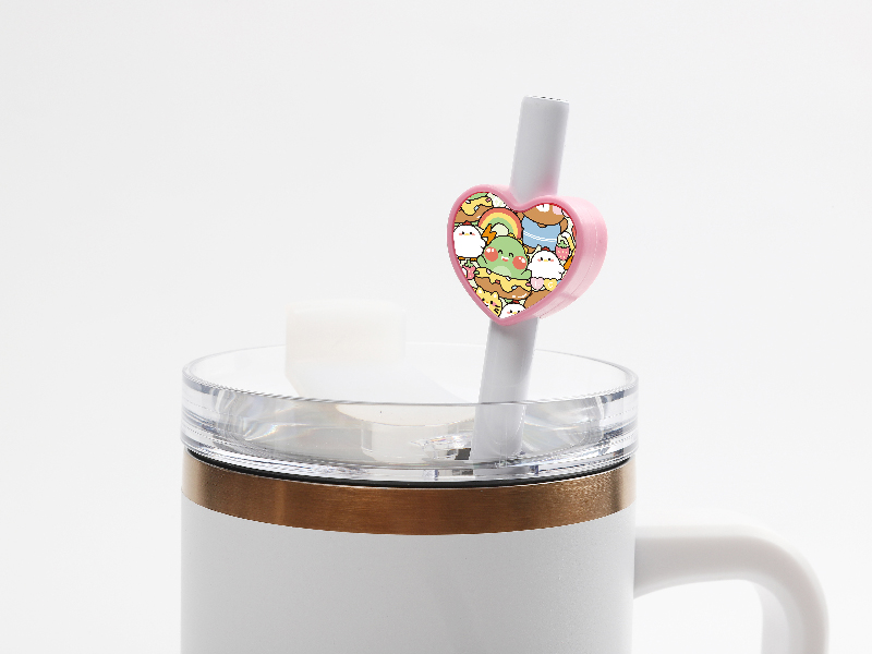 Nome do produto: Tampa de Canudo de Silicone Sub (Rosa, Forma de Coração)