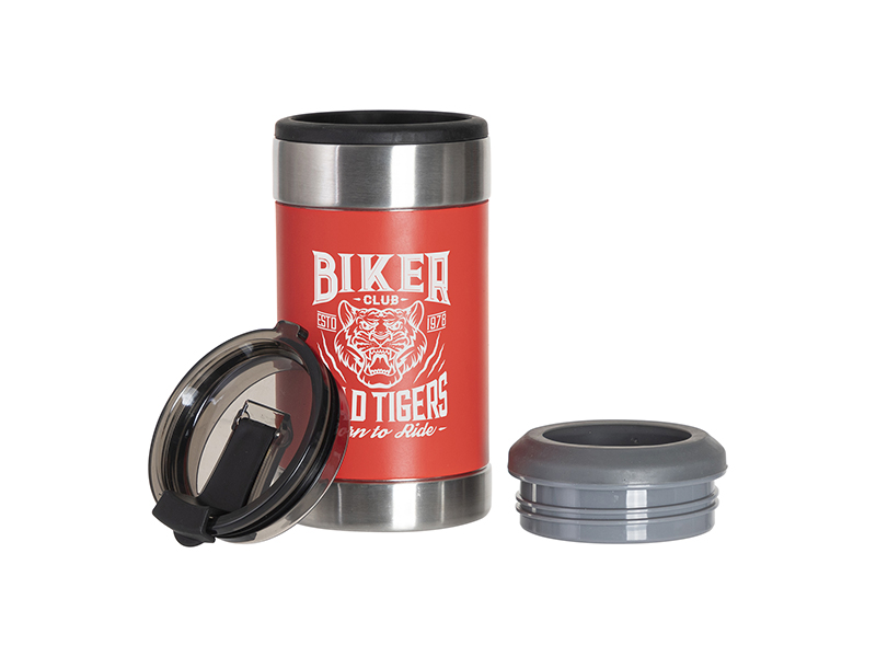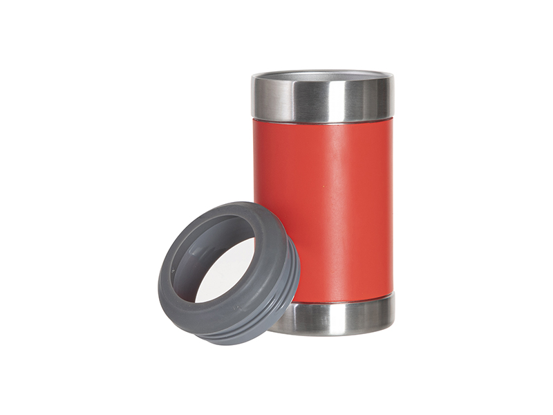 Nome do produto: Esfriador de Latas 4x1 Inox e Couro Sintético PU 12oz/350ml para gravagem laser (Vermelho/branco)Quantidade mínima 1000uds