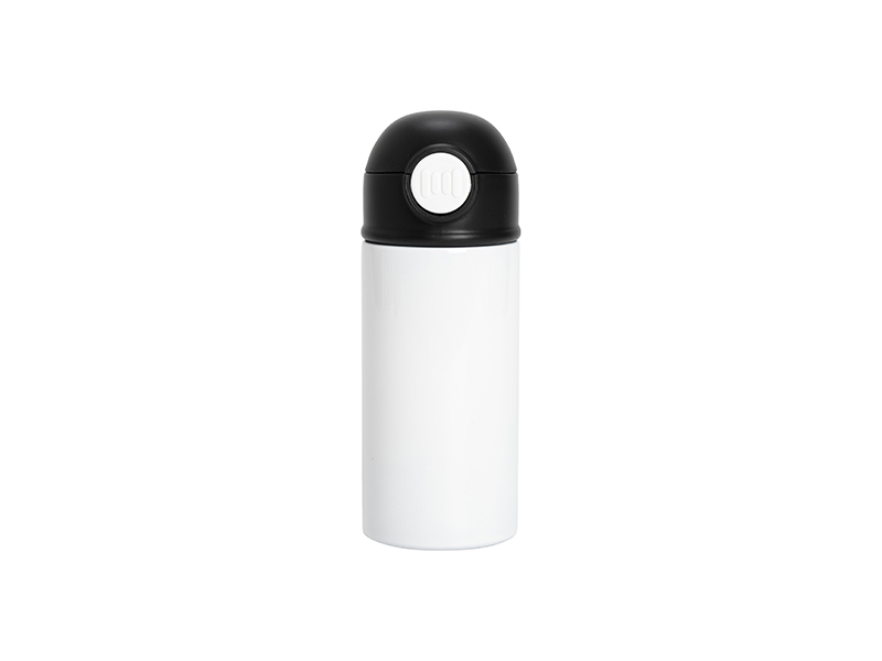 Item Name: 12oz/360ml White Sublimation Kids Stainless Steel Water Bottle with Plastic Straw & Black Cap