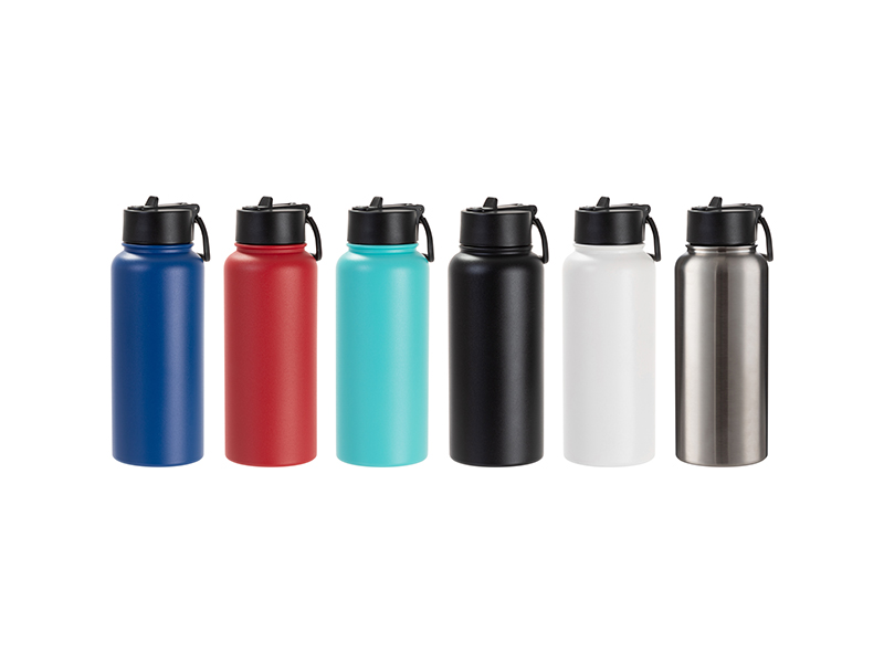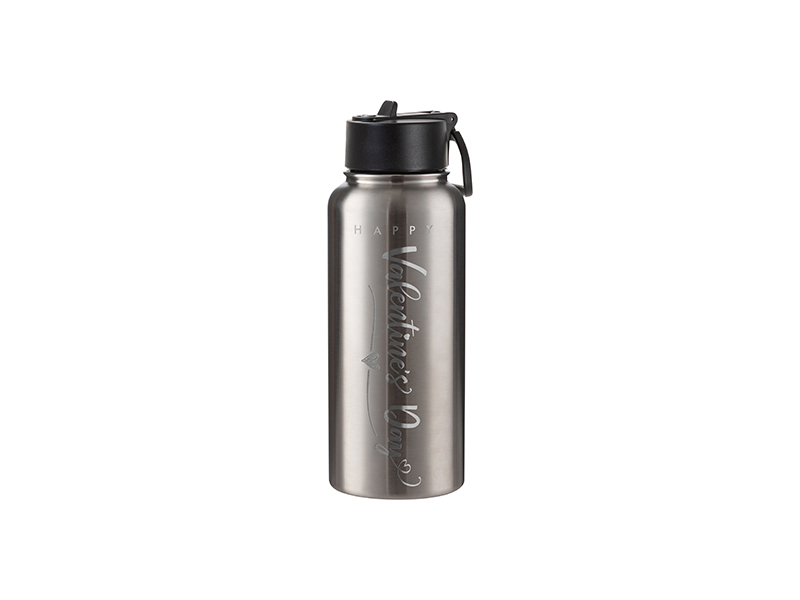 Item Name: Engraving Blanks 32oz/950ml Powder Coated SS Flask w/ Wide Mouth Straw Lid & Rotating Handle